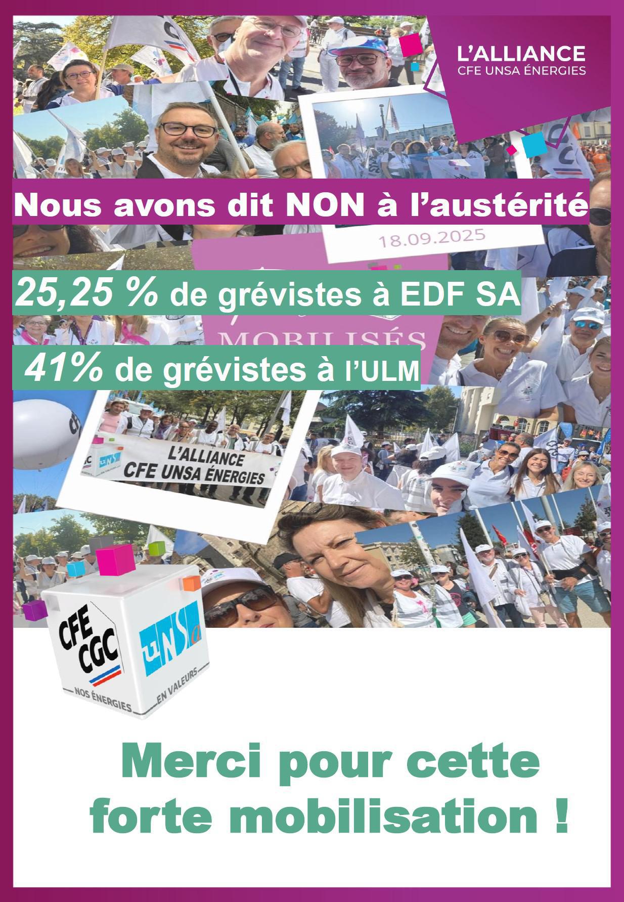 Suite à l’appel de l’intersyndicale, vous avez été 41% en grève à l’ULM (25,25% pour EDF SA)🪧
